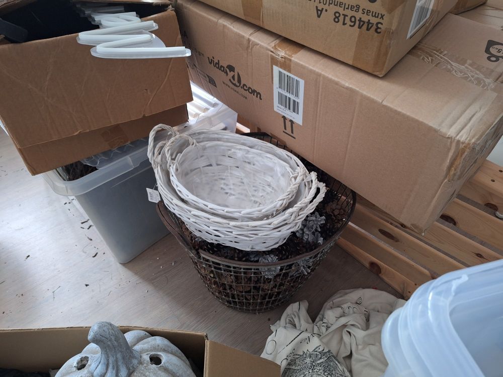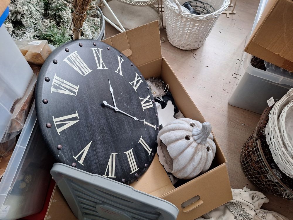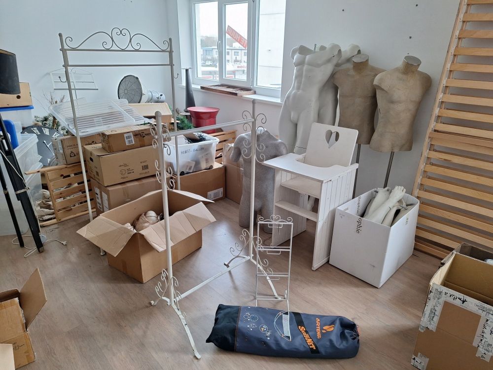 Beschrijving: Gevarieerd lot afkomstig uit een opslagruimte, bestaande uit een mix van decoratie, huisraad, mode‑artikelen en diverse gebruiksvoorwerpen. Alles wordt in één keer meegegeven zoals aanwezig.