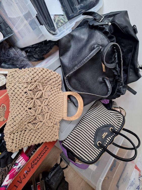 Partij schoenen, handtassen en kleding (±20 stuks)
