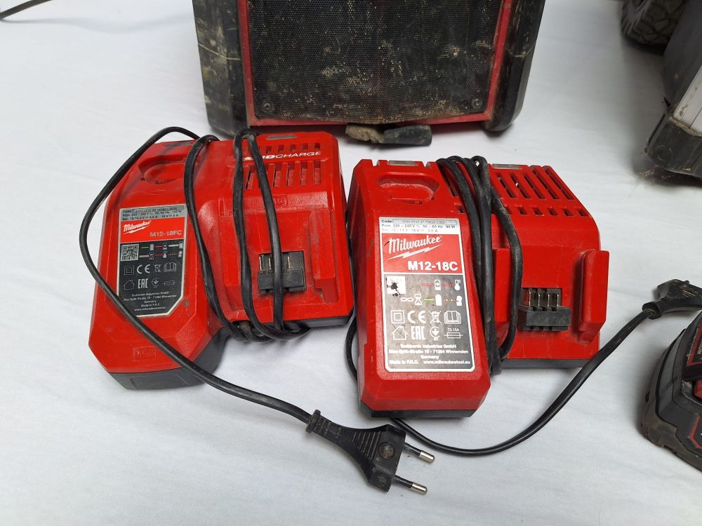 Laders: 2x Milwaukee M12-18C/FC snelladers (geschikt voor zowel M12 als M18 accu's).