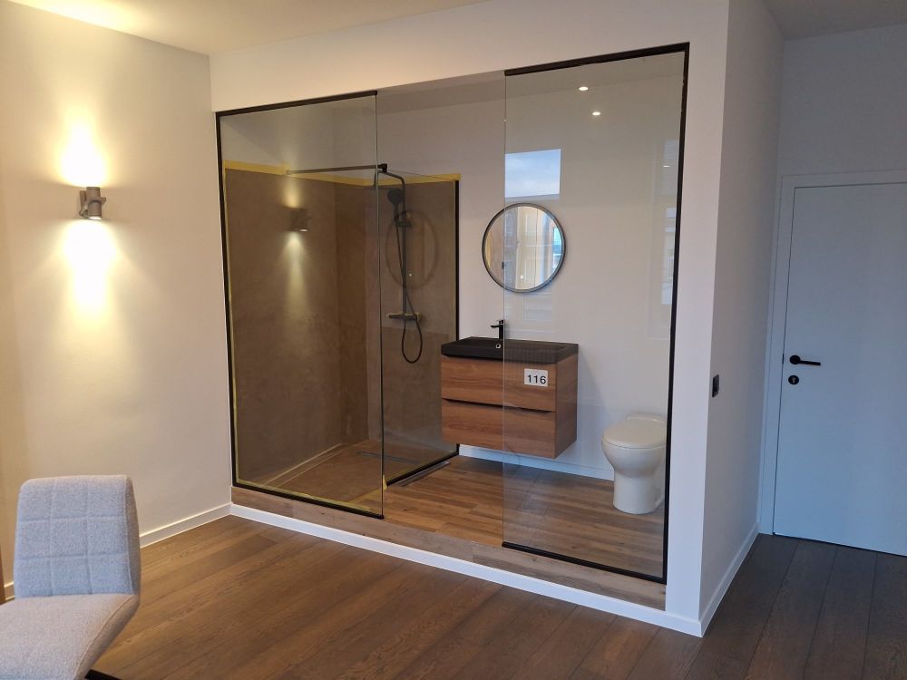 | Naam: | Moderne badkameropstelling | douche + toilet + wastafel | incl.glazen wanden |