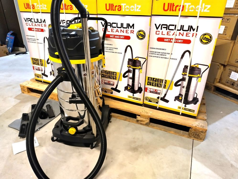 nat en droogzuiger 100 liter, compleet met hulpstukken, 3200 watt vermogen, 2 motoren. Nieuw in doos