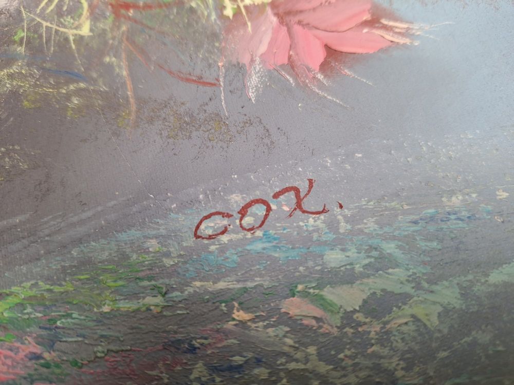 | Naam: | Olieverfschilderij met waterlelie / lotusbloemen – Gesigneerd "COX." |