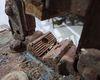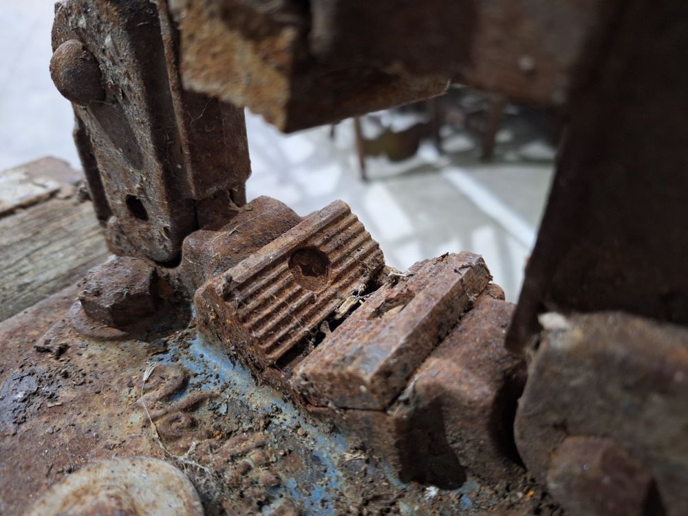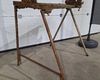 Onderstel:Eenvoudig, robuust metalen onderstel met vier schuine poten, ook zwaar verroest.