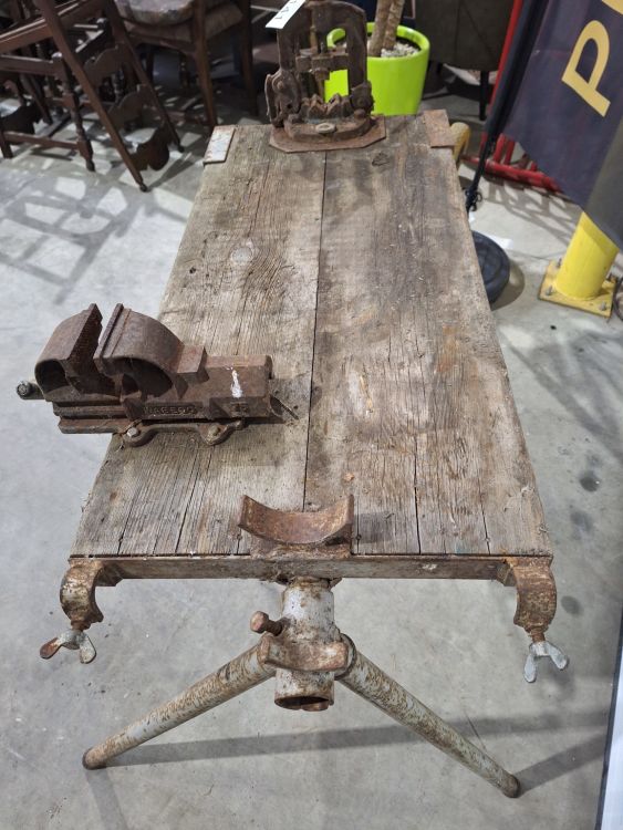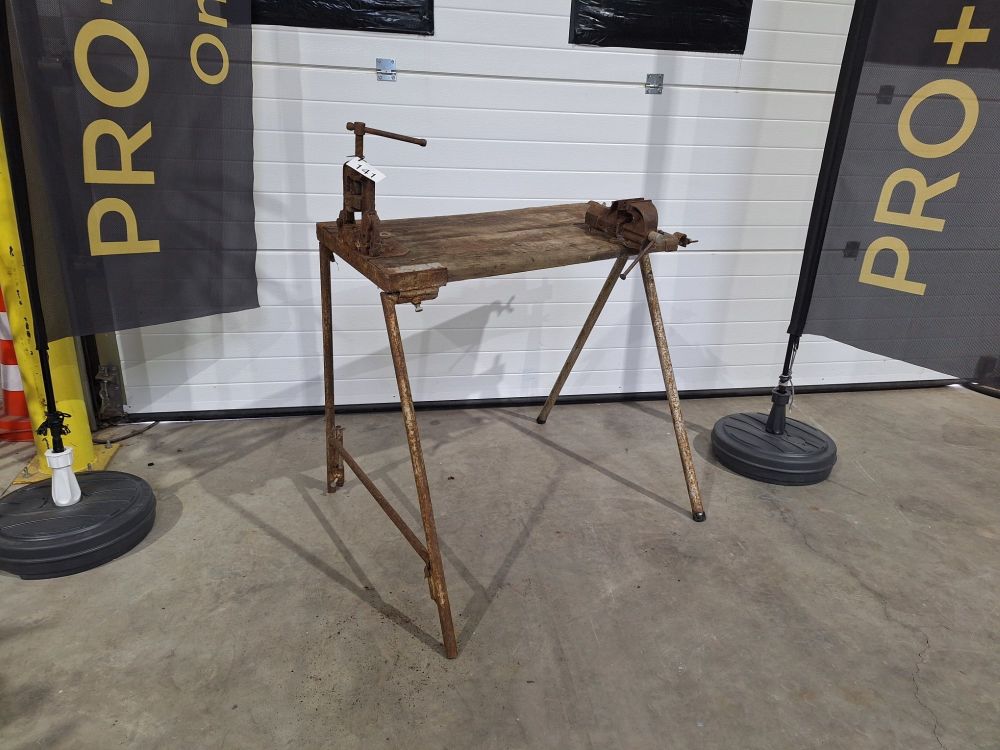 | Naam: | Oude Industriële Werkbank met Klemmen |