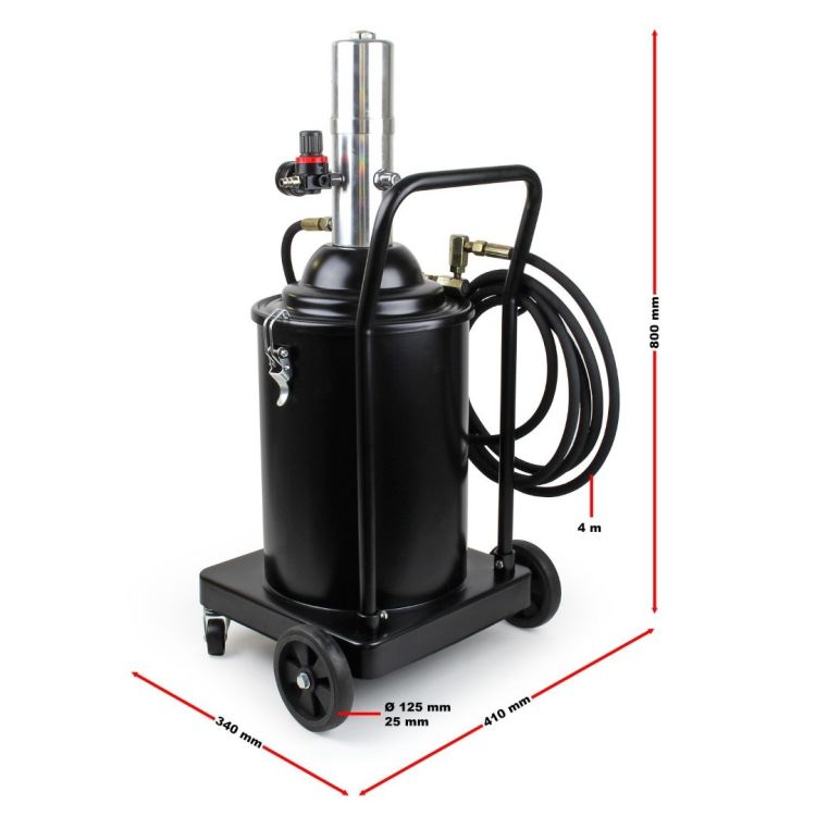 • Professionele werkplaats vetspuit perslucht • Voor nauwkeurig en snel smeerwerk • Smeervermogen van 0,85 liter per minuut • 15 liter tank voor vetopslag • Mobiel apparaat met compacte grootte 91x40x39cm gewicht: 13.5 kg