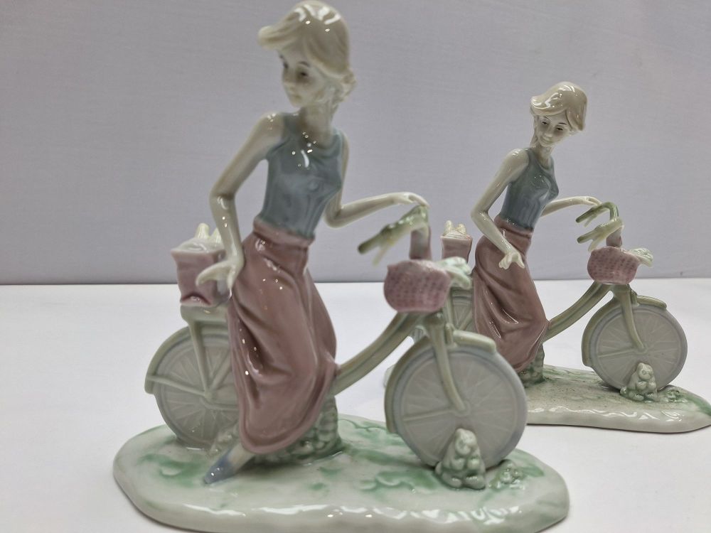 | Naam: | Porseleinen Figuurtjes – Dame op Fiets – 2 stuks – ca. 18 cm |