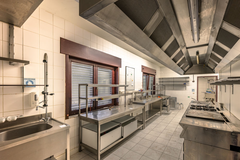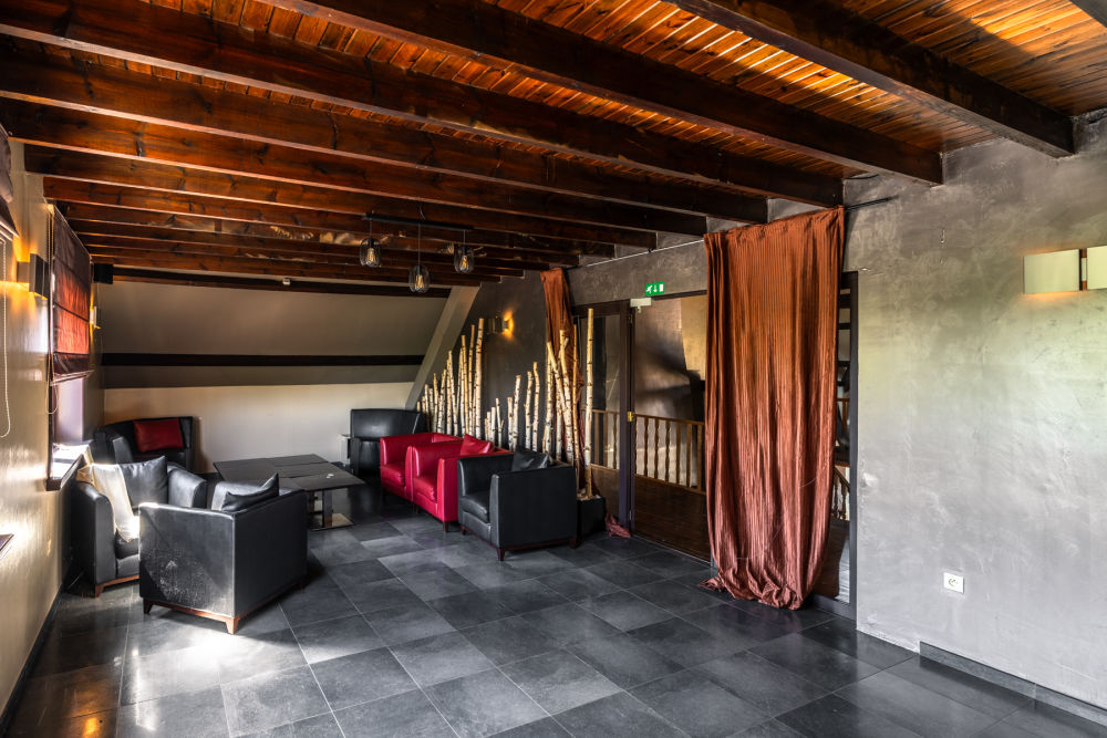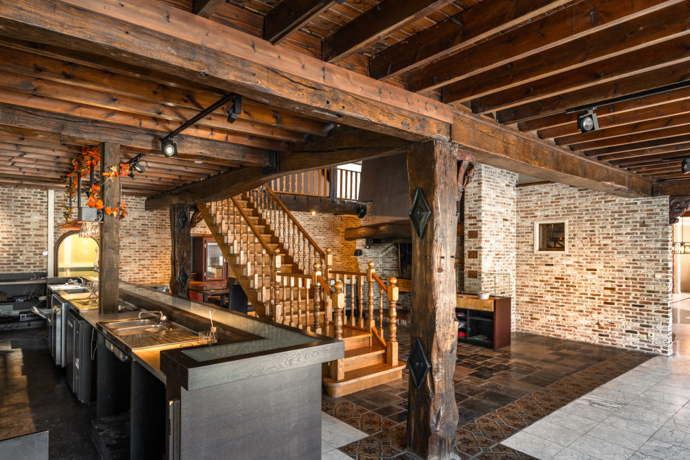 Gelijkvloers : bar met grill, keuken, gelag-/feestzaal, sanitair