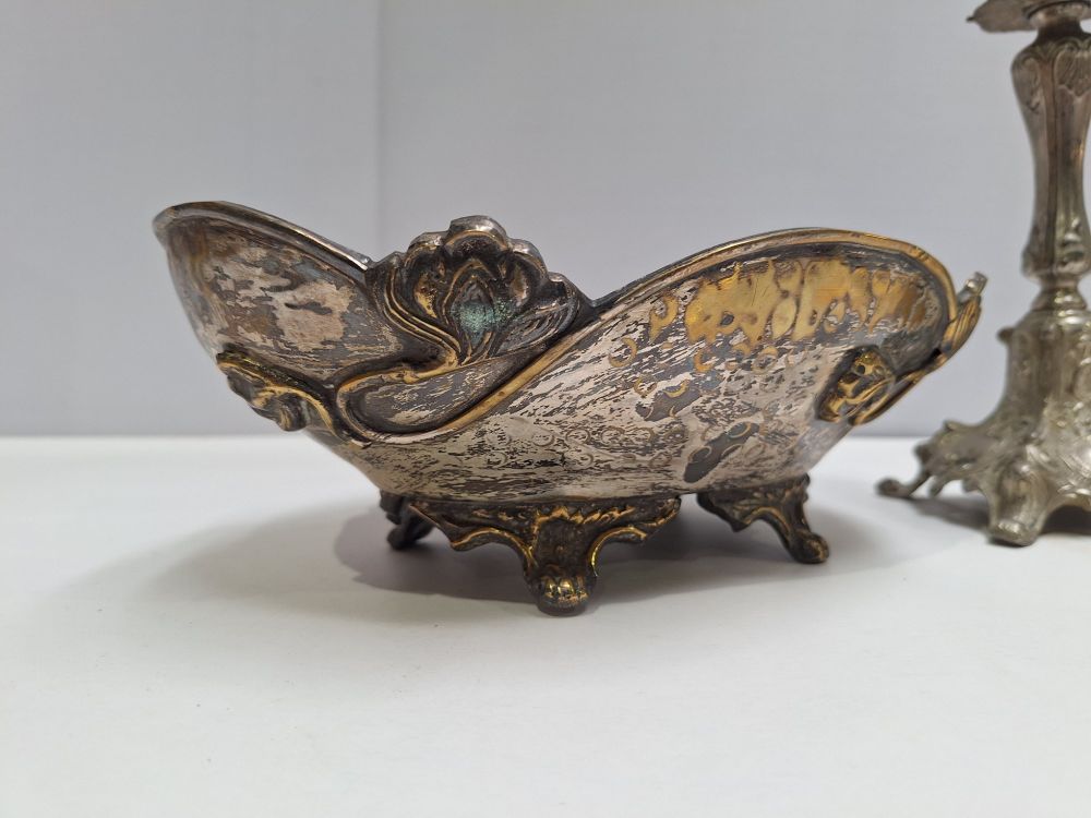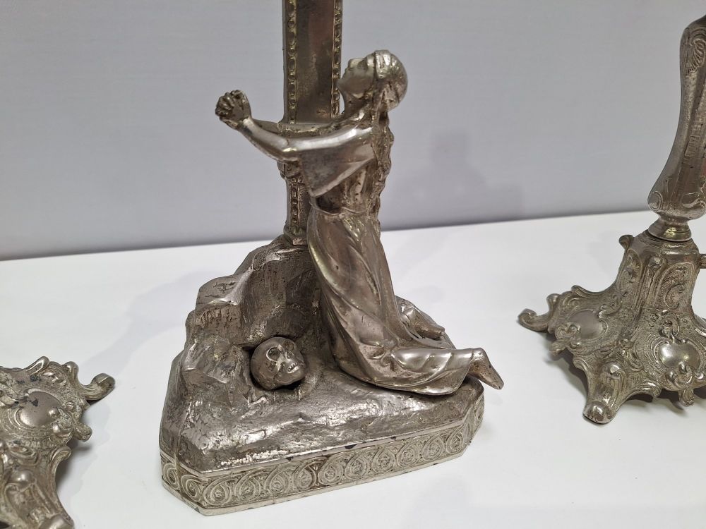 | Naam: | Religieus Altaargarnituur met Gehamerde Schaal |