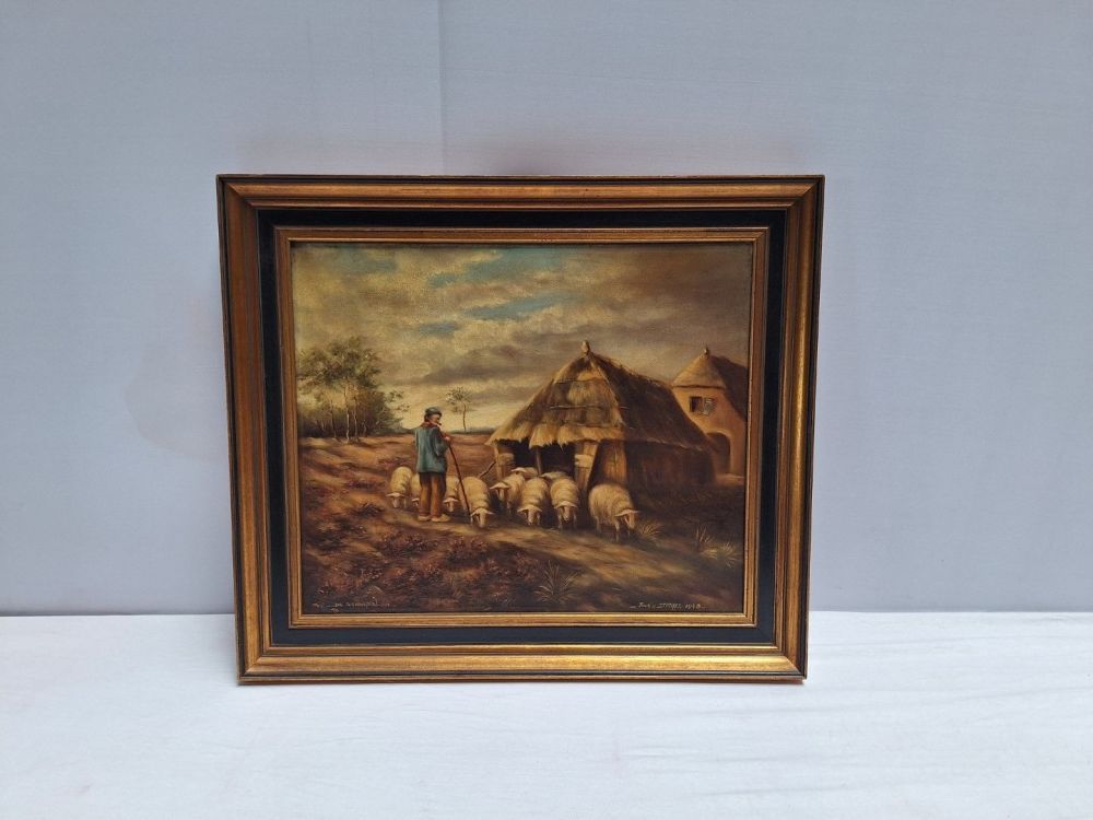 | Naam: | Schilderij herder met schapen "De Schaapskooi"1943 |