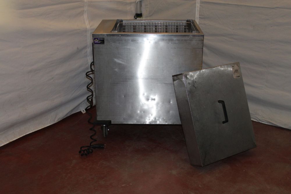 Merk: Jos ten Berg. 84cm x 65 cm x 105cm. 230V. Schotelverwarmer werkt perfect. Enkele blutsen in maar geen technische mankementen.
