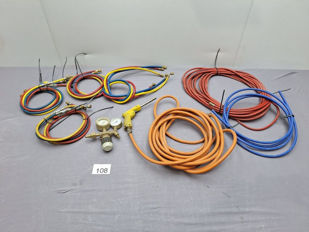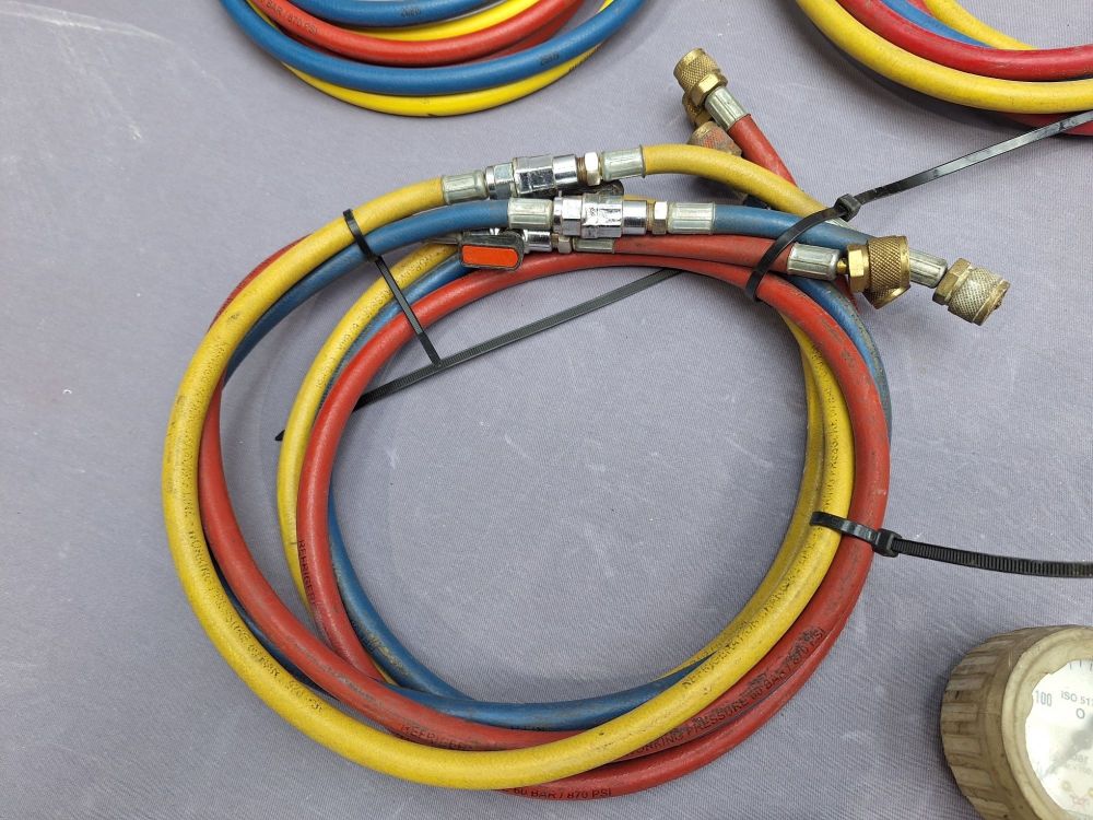 | Naam: | Set Diverse Slangen, Manometer en Apparaat (Koeltechniek / Gas) |