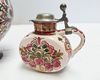 | Naam: | Set van drie decoratieve keramische kannen met metalen deksel en handvat |