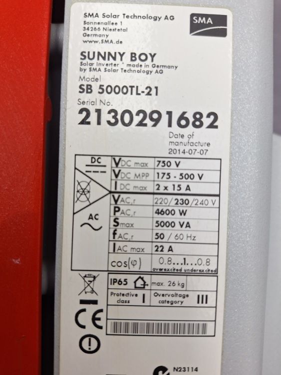 | Naam: | SMA Sunny Boy SB 5000TL-21 omvormer |