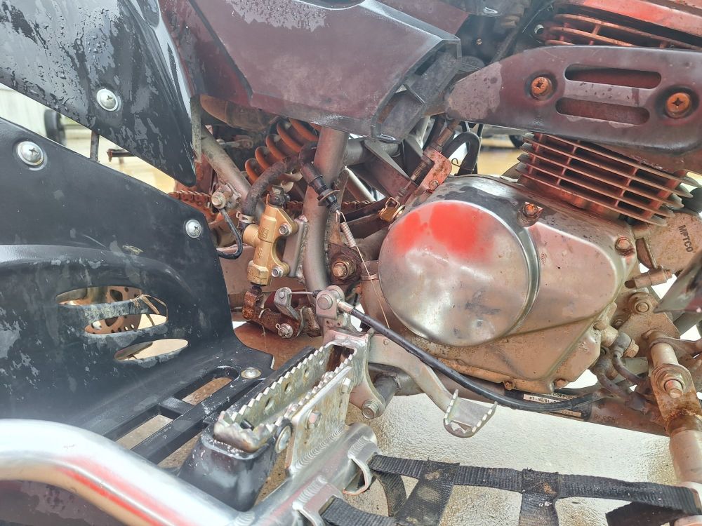 Schade: Significante brandschade aan het zadel (bekleding en schuim gesmolten) en hitteschade aan de zwarte kunststof kappen,glas km-teller is gebarsten.