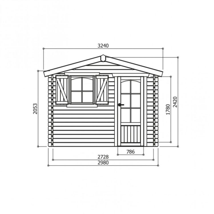 het tuinhuisje Servoz is een traditionele blokhut uit gecertificeerd noord europees vurenhout,de ramen beschikken over praktische en elegante luikjes,de versterkte dikte van de muren zorgt voor een betere isolatie,afmetingen: 2980 x 2980 x2392 mm,fundament:3980 x 2980 mm,oppervlakte:8.88m2,binnenoppervlakte:7.44m2,wanddikte:40mm,type dak:zadeldak met shingels,materiaal: onbehandeld te behandelen 31.10m2, gratis levering aan huis een tiental dagen voor de levering wordt u geinformeerd over de leverdatum.