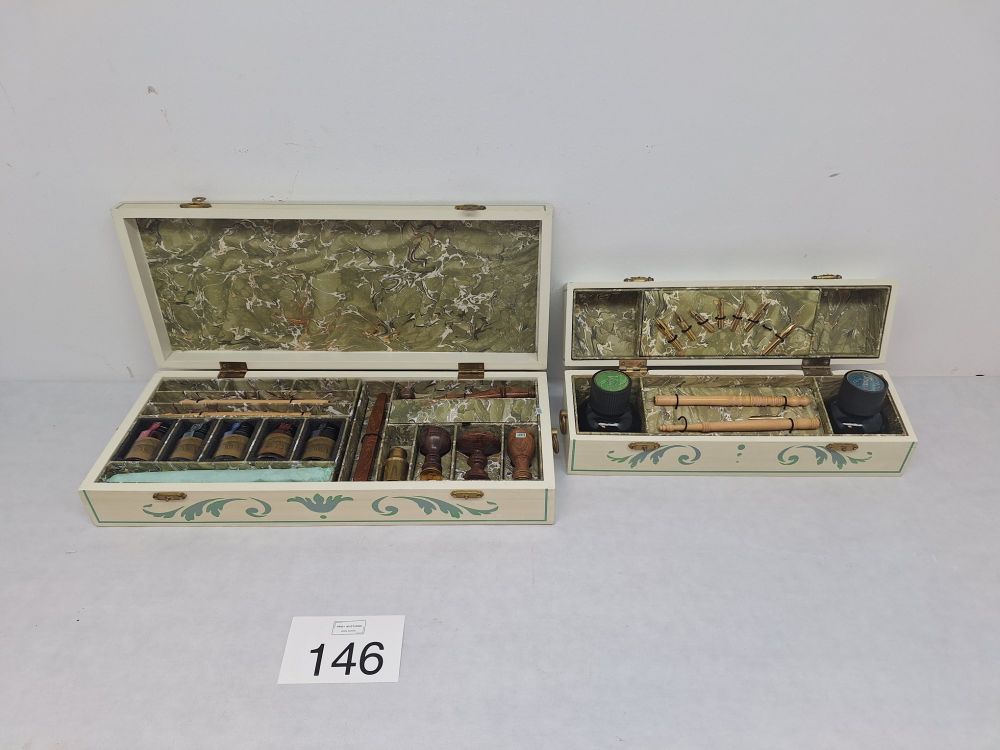 | Grote Kist (Inhoud) | 5 Inktflesjes, 2 houten penhouders, 4 gouden penpunten, zegellak, 3 zegelstempels, houten zegelgereedschap en briefopener |