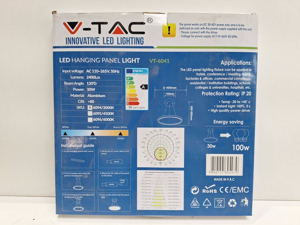 | Naam: | V-TAC VT-6041 LED Hanging Panel Light 30W Rond - Hanglamp |