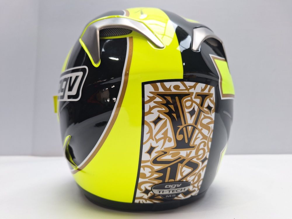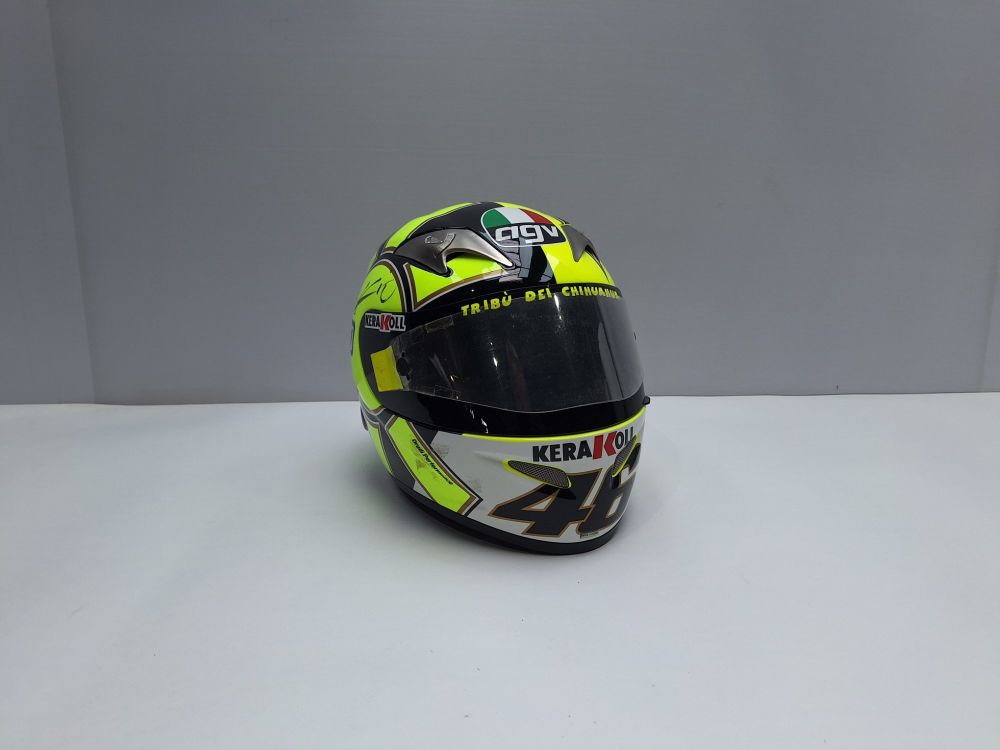 | Naam: | Valentino Rossi Gesigneerde AGV Ti-Tech Helm - "Tribù dei Chihuahua" |