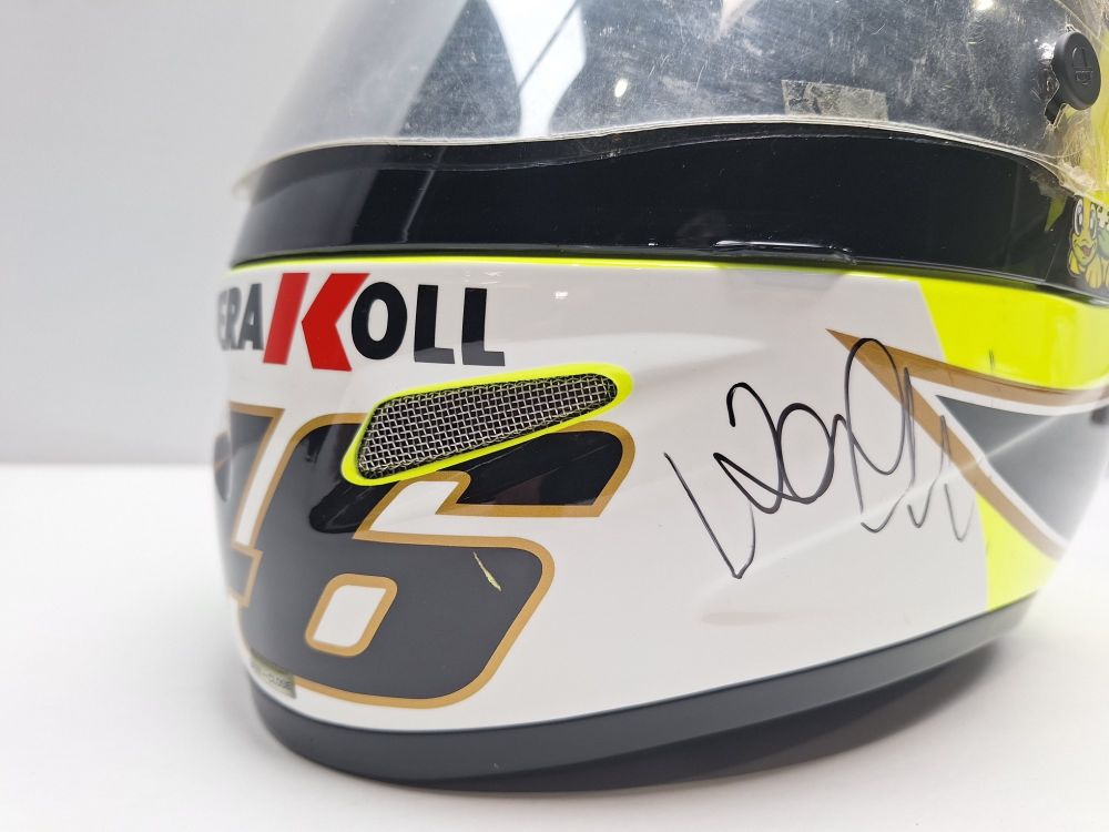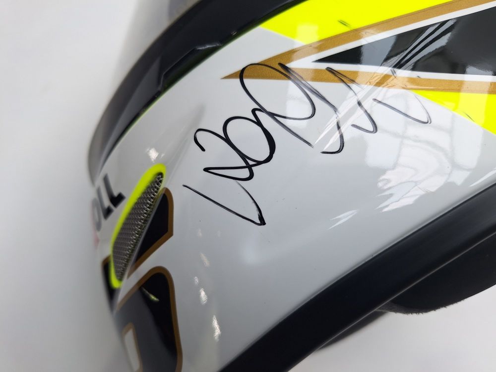 | Handtekeningen | Voorzien van meerdere handtekeningen op de helmschaal (boven- en zijkant) |