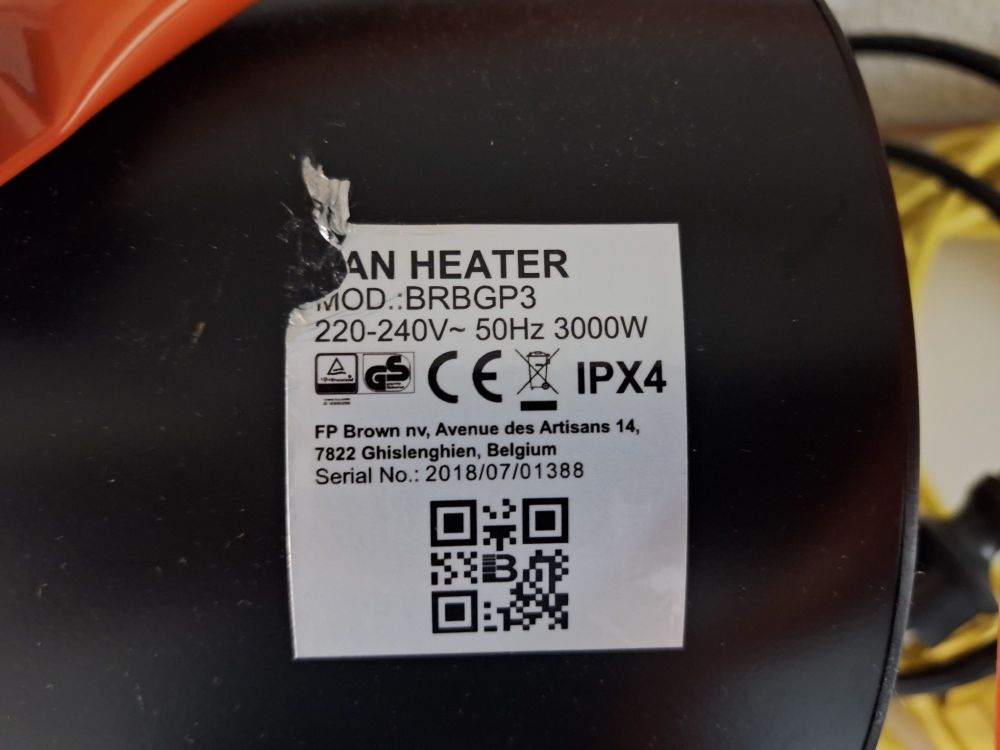| Naam: | Ventilatorverwarming – BRBGP3, 3000W + verlengsnoer |