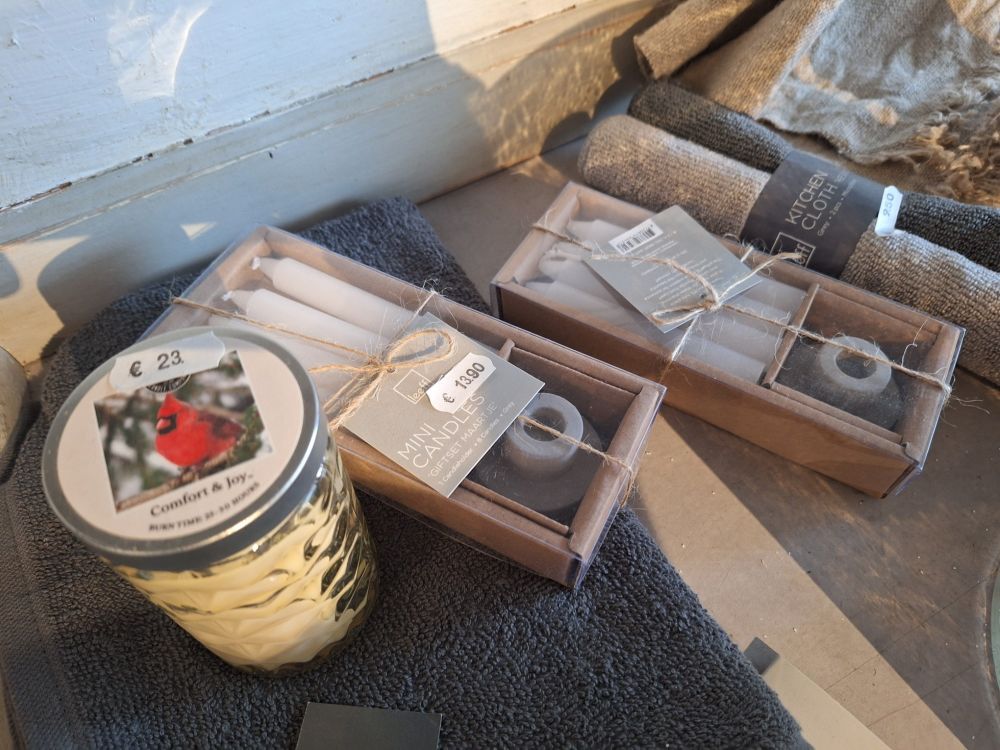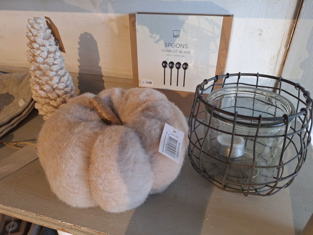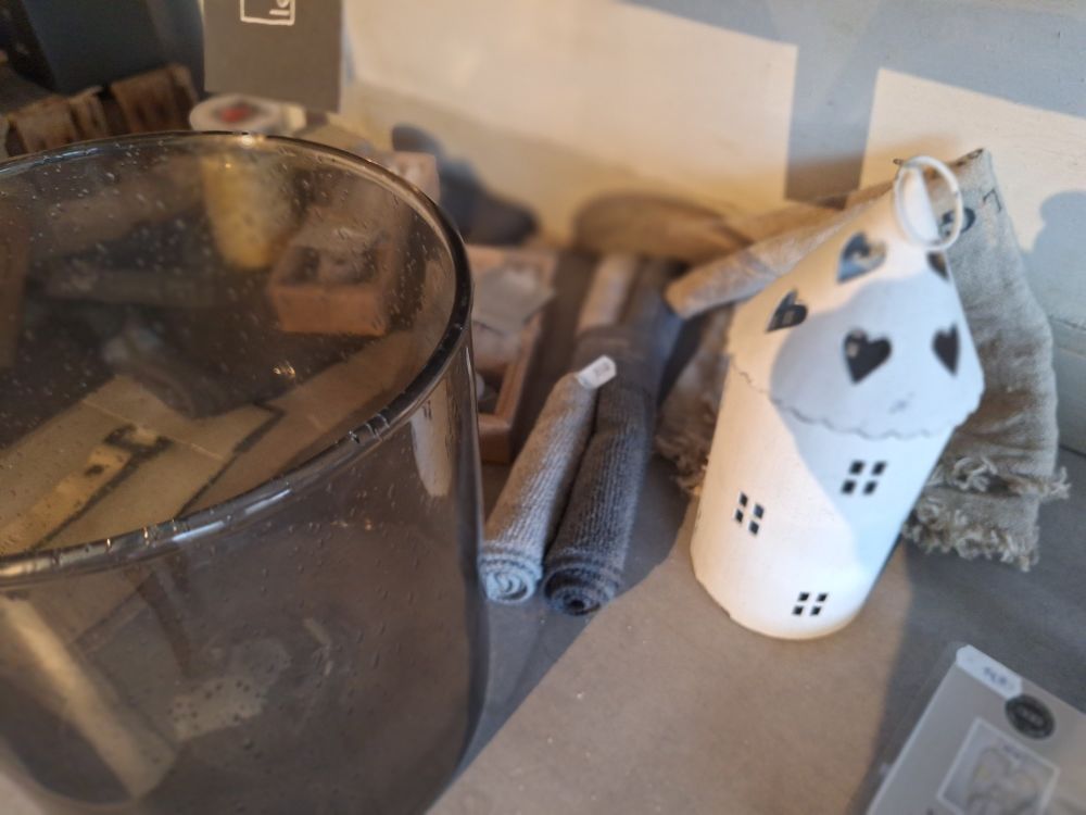 Inhoud van dit lot:vintage open houten rek met kaarsen, kussens, glaswerk en fotolijsten.
