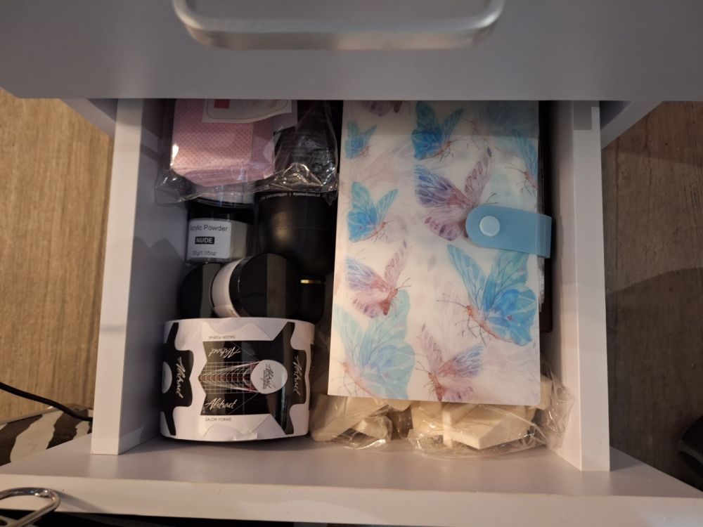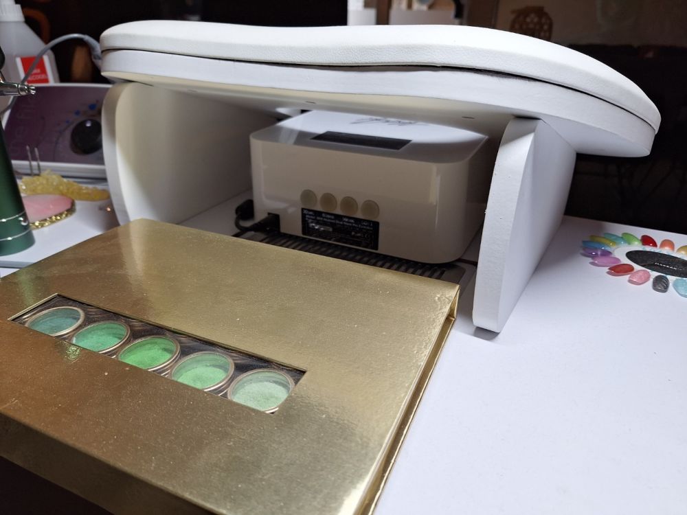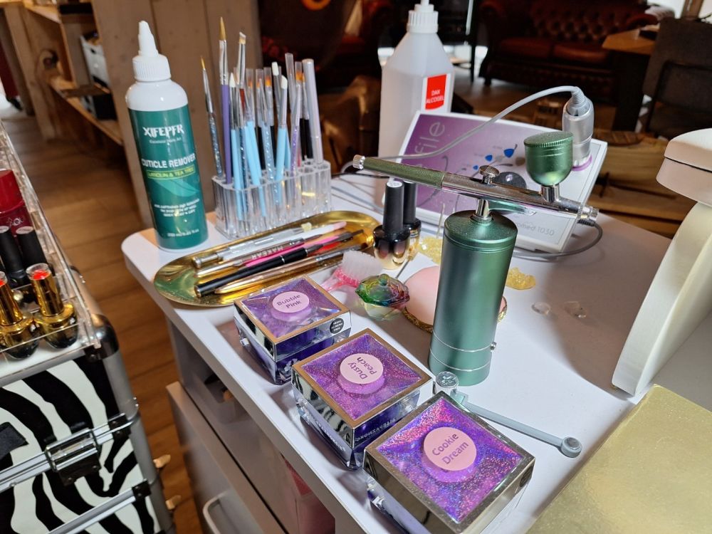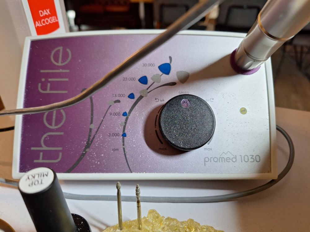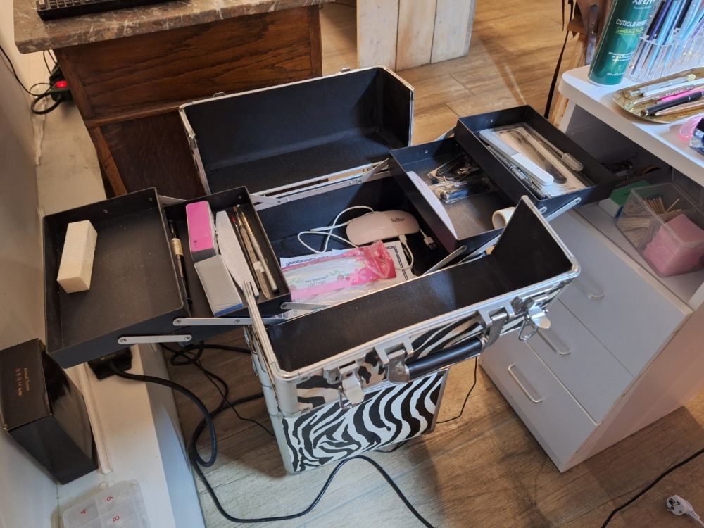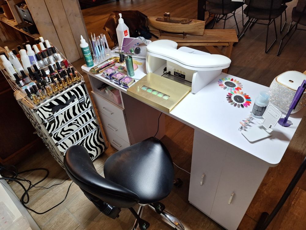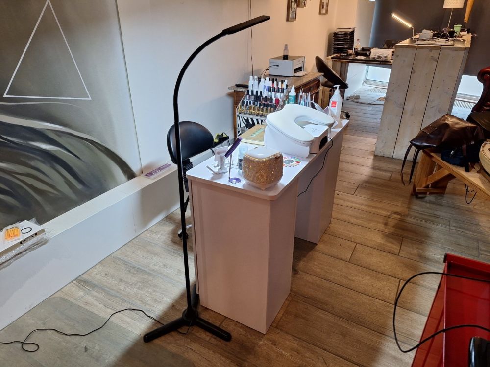 Professioneel manicurestation met tools(meubel,verlichting,stoel, zebra-opbergkoffer, Promed 1030 nagelfreesmachine met accessoires)