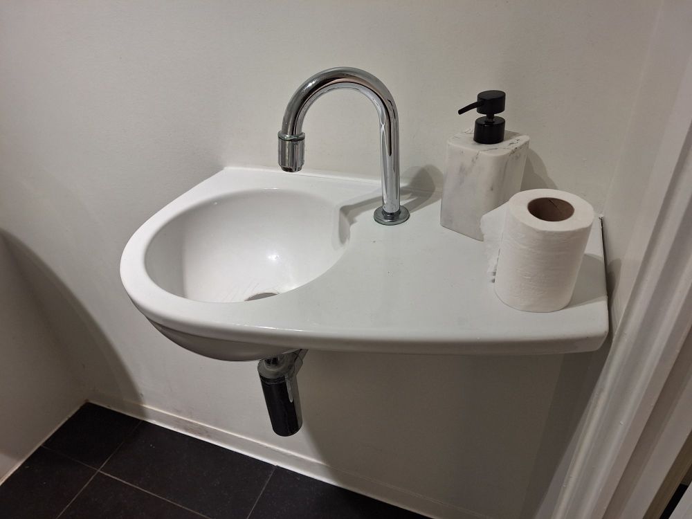 | Wastafel | Wit keramiek met spiegel en zeepdispenser |